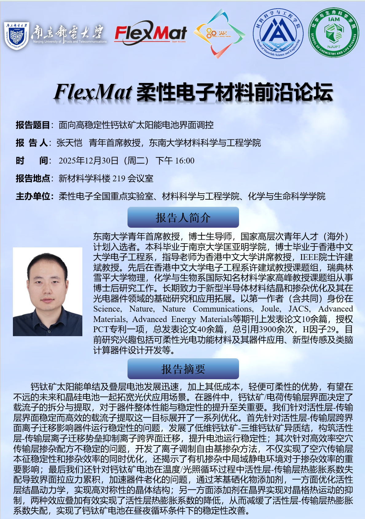 FlexMat柔性电子材料前沿论坛:东南大学 张天恺教授