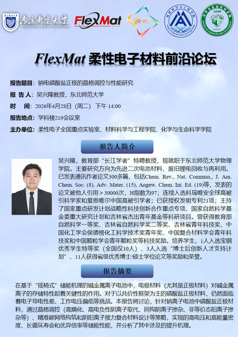 FlexMat柔性电子材料前沿论坛:东北师范大学 吴兴隆 教授